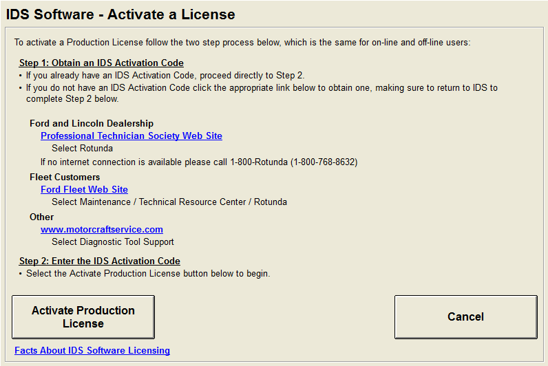 Begin the process by going to the IDS Software Activate a License screen using either of the two methods discussed above and enter your Activation Code, at which point you will receive the following screen: